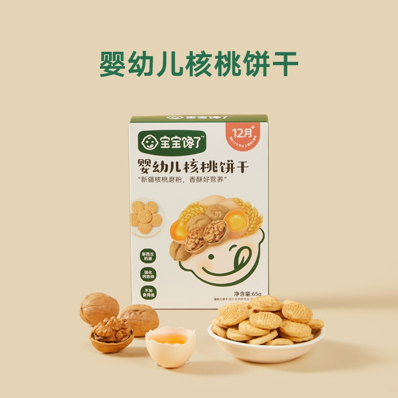 | nameOriginal | Baby is craving for walnut biscuits for infants and toddlers, no added flavor, baby supplement 65g baby snacks fortified with calcium, iron and zinc |