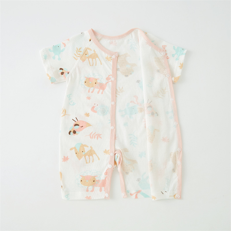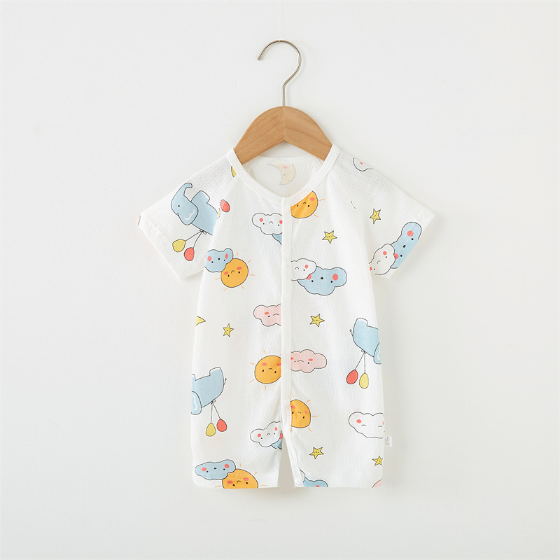 Baby Jumpsuit Pure Cotton Short-sleeved Hassel Summer Thin Baby Clothes Boneless Climbing Suit Newborn Pajamas Category a