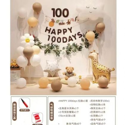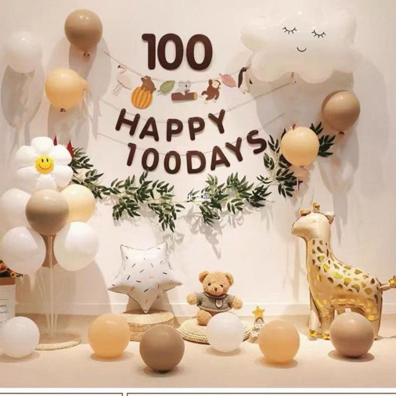 Baby Photo Props Hundred Days Banquet Birthday Decoration Hundred Days Net Red Day Memorial Balloon Scene Layout Background Wall