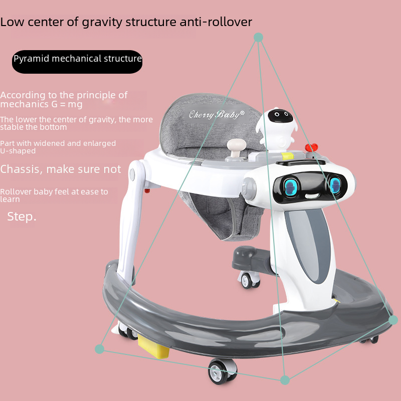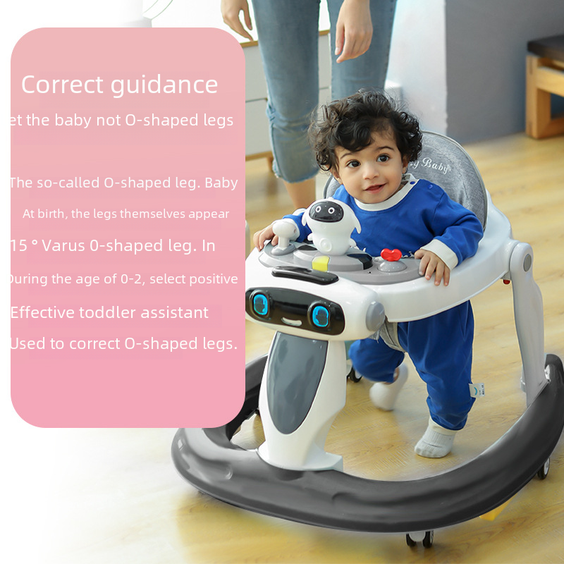 Baby walker anti-O-leg baby children's multi-function anti-rollover walker with hand push can sit and fold