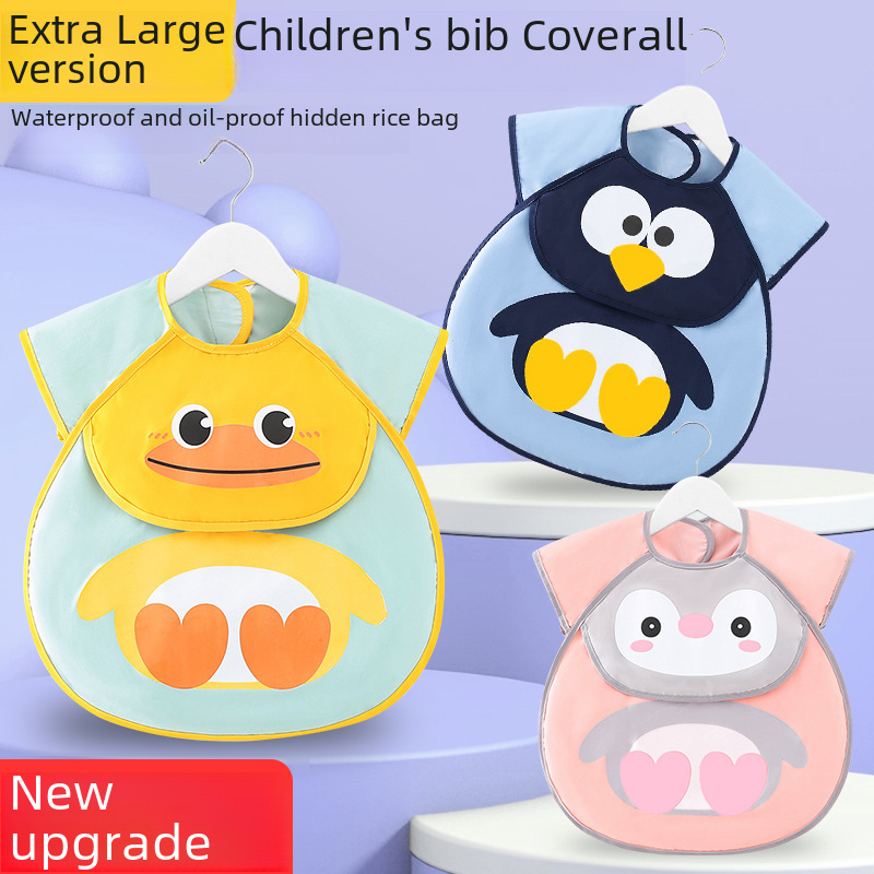 Baby's Dining Bib Children's Overalls Waterproof Anti-Dirty Feeding Food Supplementary Food Redressing Boys' and Girls' Apron Rice Pocket