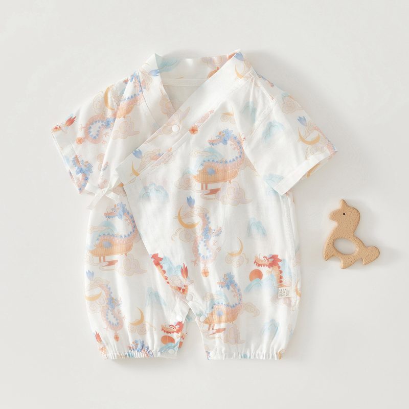 nameOriginal | Baby's jumpsuit gauze summer short-sleeved monk suit newborn's fart wrap bamboo fiber baby's khak coat outerwear |