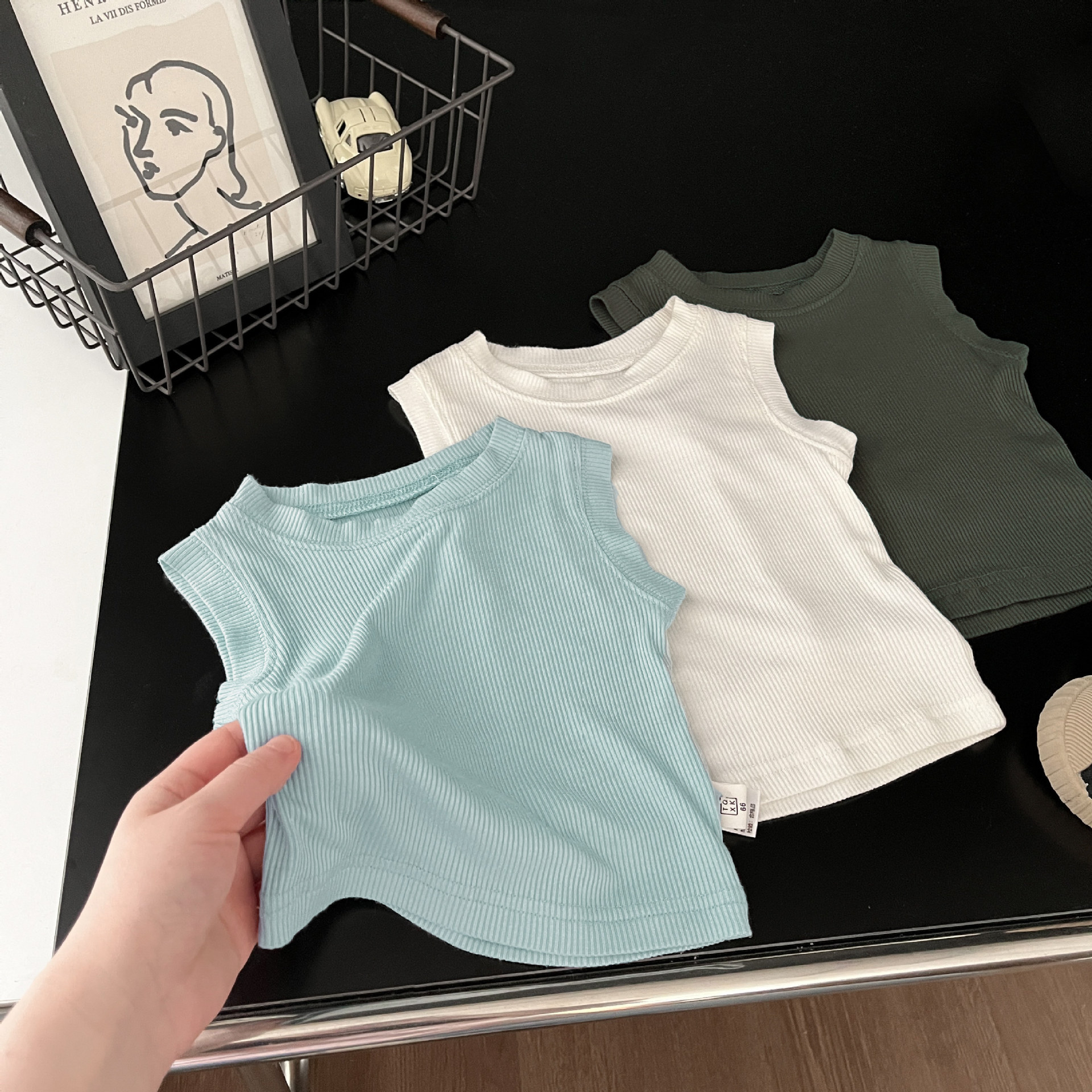 Baby's Summer Vest Boy's Ice Silk Thin Sleeveless Top Basic Baby's Elastic Pit Strip Cool Waistcoat Fashionable