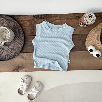 سترة صيفية للأطفال للأولاد من الحرير الجليدي رفيعة بدون أكمام سترة أساسية للأطفال شريط مرن صدرية رائعة عصرية