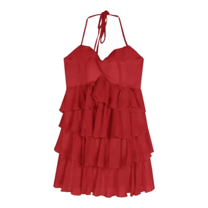 فستان عاري الصيف صيف أحمر فضفاضة رقبة شماعات
