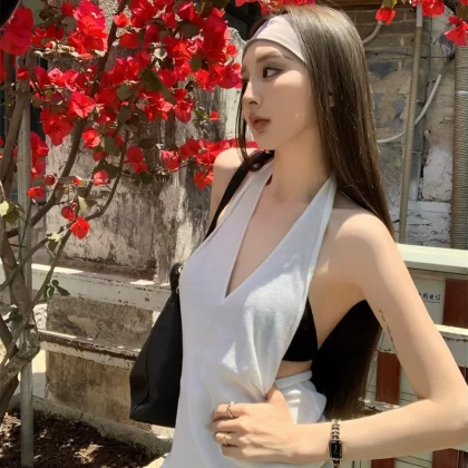 | nameOriginal | Backless slim fit mid-length sleeveless white halter neck strap |