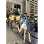 | nameOriginal | Baishiwang heavy industry washed distressed Denim coat spring Korean women's small loose wide short jacket top |