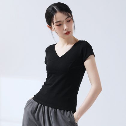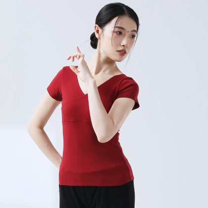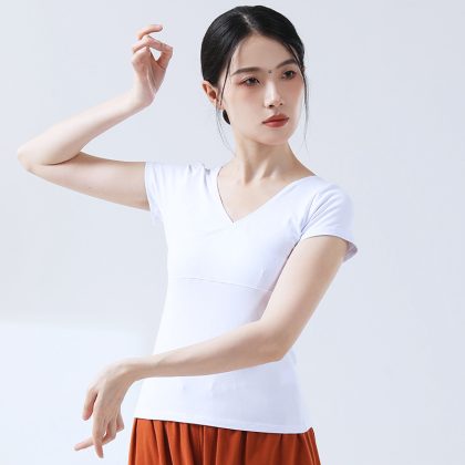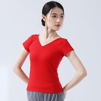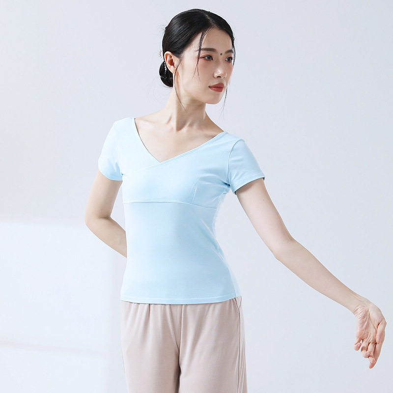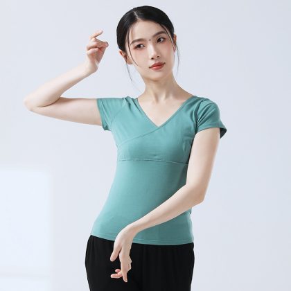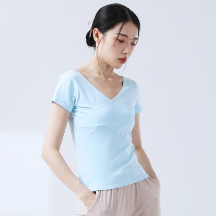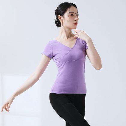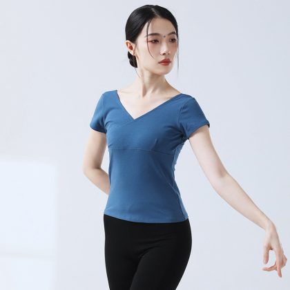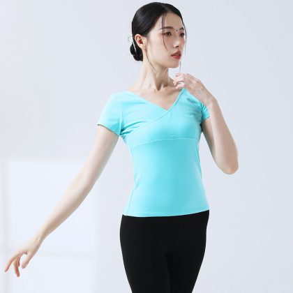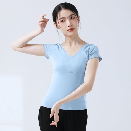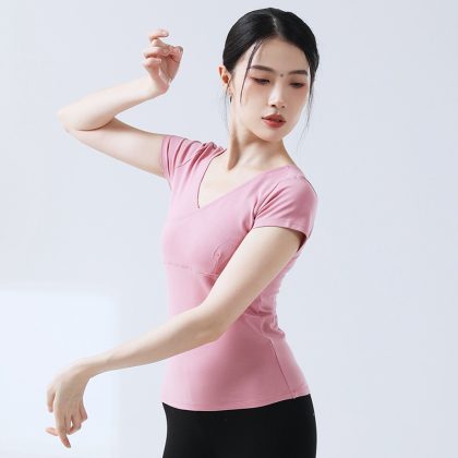 Ballet Practice Suit V-neck Gymnastics Suit Women's Short-sleeved Backless Yoga Suit Modern Dance Suit Top