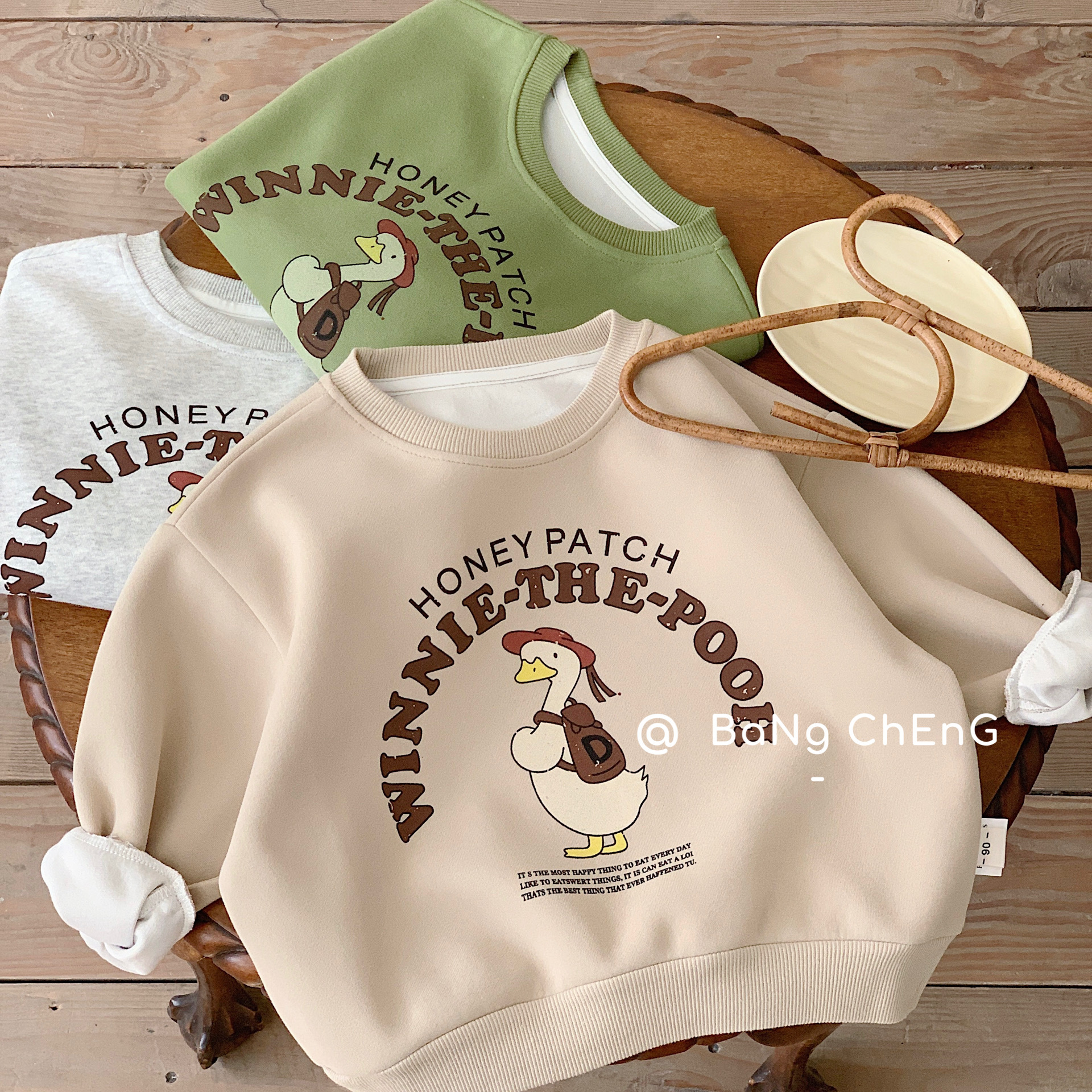 Bangcheng 24 spring new boys and girls backpack duck printed children's clothing cartoon round neck children's sweater fashion G0002