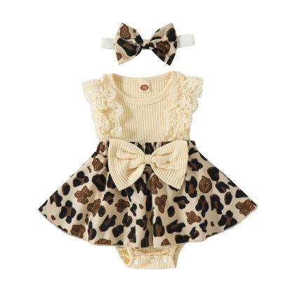 Baopin ملابس الأطفال الأوروبية والأمريكية الصيف حفرة الشريط الدانتيل خياطة الزهور طباعة كاملة قطعة واحدة خمسة ألوان هاكا الطفل بدلة الأطفال