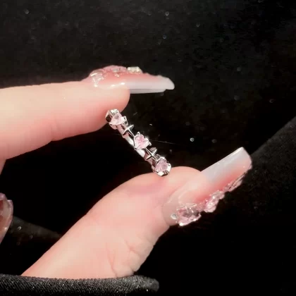 Barbie Pink Diamond Love Ring for Women Niche Design Hade Wend