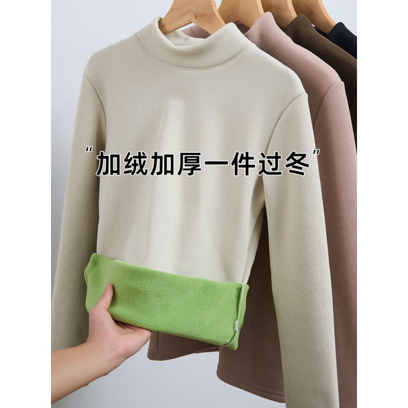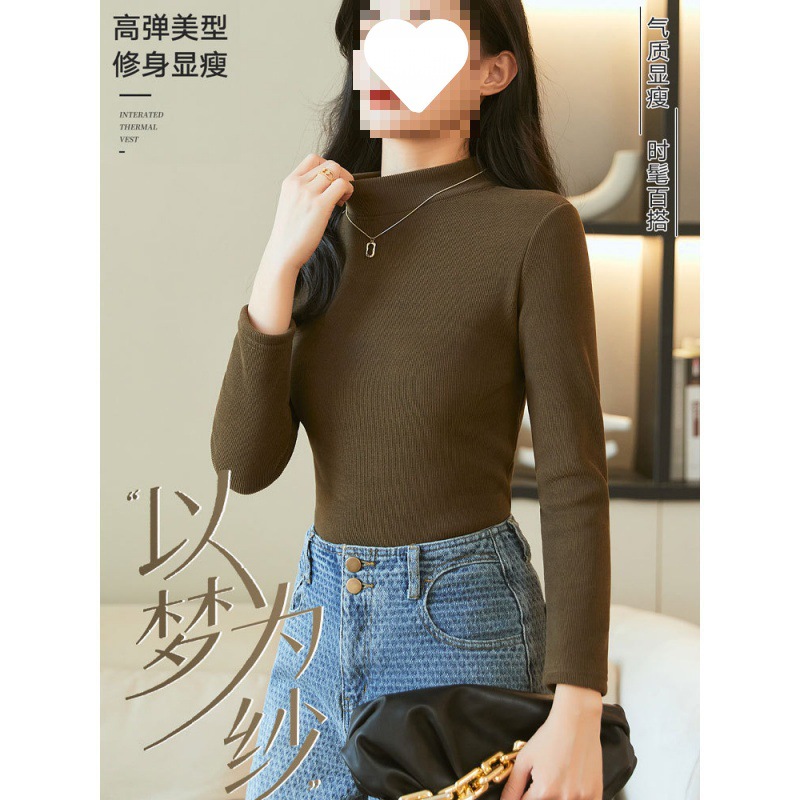 | nameOriginal | Base shirt women's half high collar autumn 2023 new plus velvet padded camel velvet interior slim long sleeve top manufacturers |