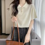 nameOriginal | Basic Polo Shirt Short-sleeved Top Women's Summer 2024 New Casual All-match Loose Slim Waffe T-shirt |