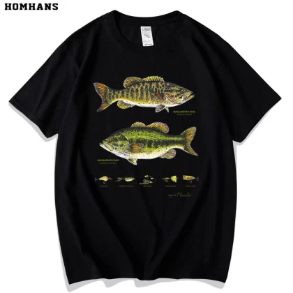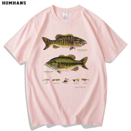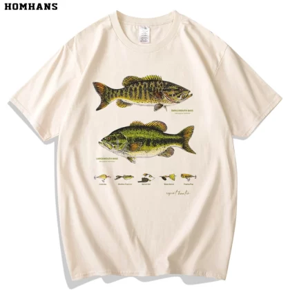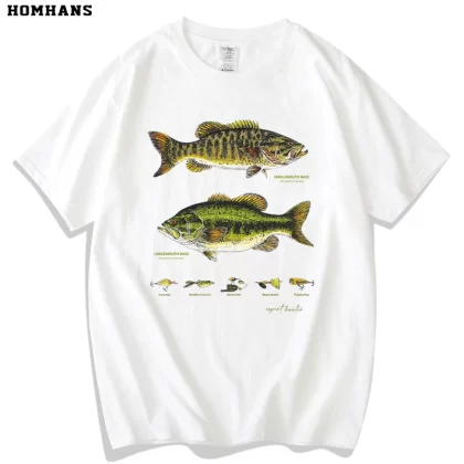 | nameOriginal | Bass hand-painted art short-sleeved fisherman's fun printed clothes fly fishing lure heavy cotton loose large size |