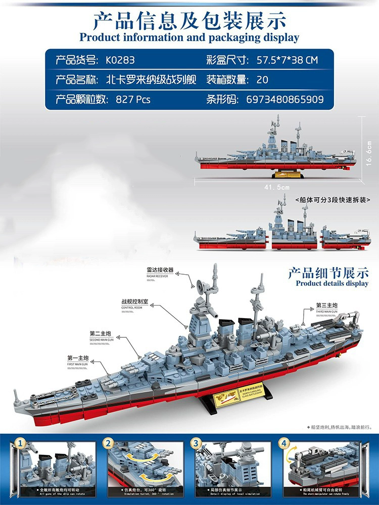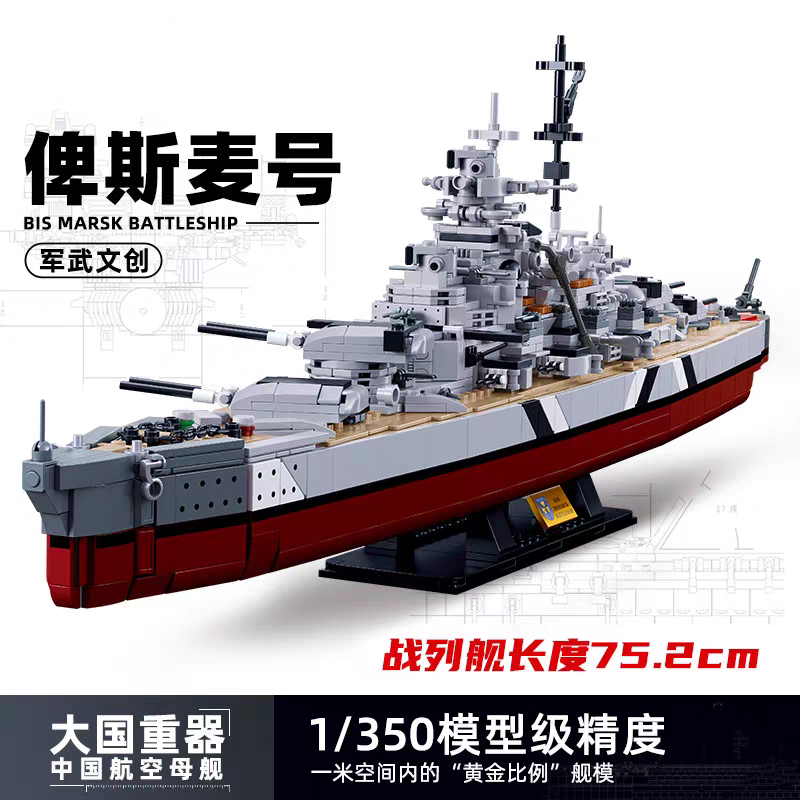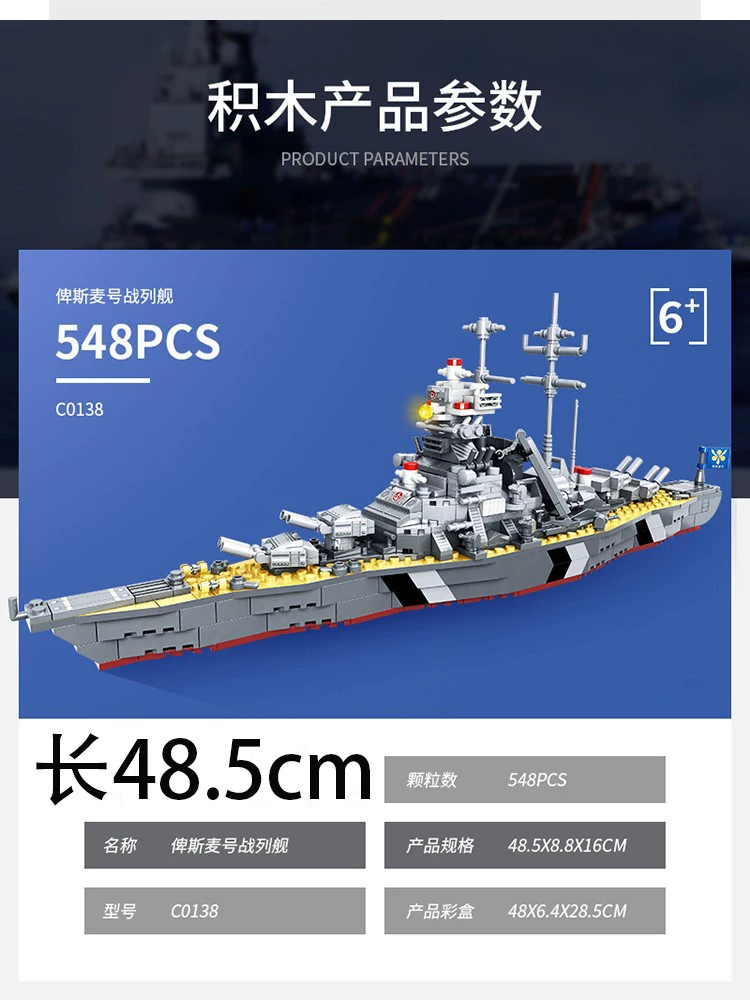 | nameOriginal | Battleship building blocks World War II destroyer Bismarck battleship ship warship model toy assembly large series vintage |