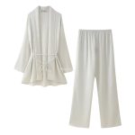 BB 2024 ربيع جديد أزياء نسائية أوروبية وأمريكية عبر الحدود مع بدلة سروال كيمونو بطيات التعادل