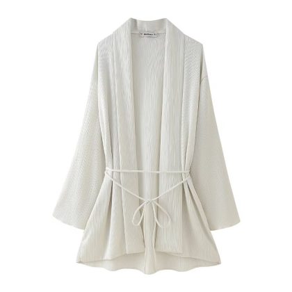 BB 2024 Spring New European and American Cross-border Women's Fashion with Tie Pleated Kimono Pants suit