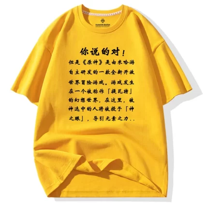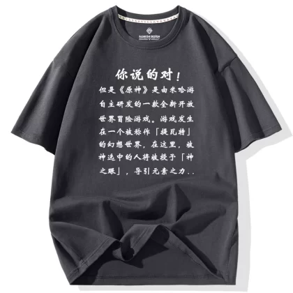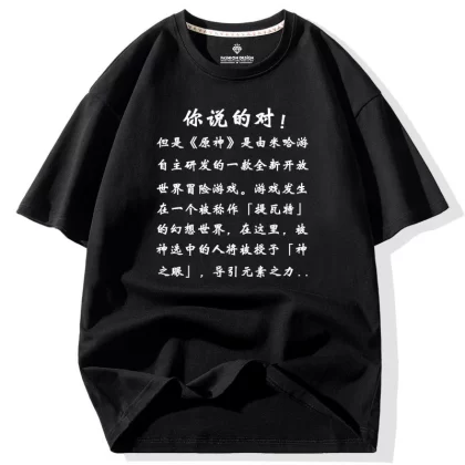 | nameOriginal | BBS spoofs Genshin Impact Black I play Genshin Impact What’s wrong with Genshin Impact Pure cotton short-sleeved T-shirt loose casual men’s summer clothes |