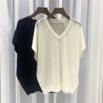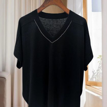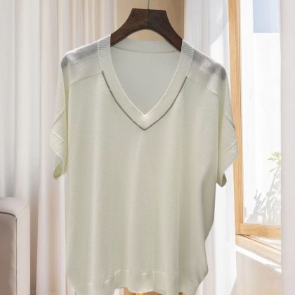 | nameOriginal | BC Style Women's New Style Simple and Comfortable BC Bead Chain Silk Sweater V-neck Loose Knitted Sweater Short Sleeve Top for Women |