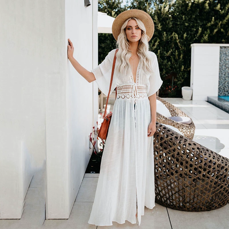 beach long covers European and American vacation beach dress seaside mid-length bikini cover-up cardigan