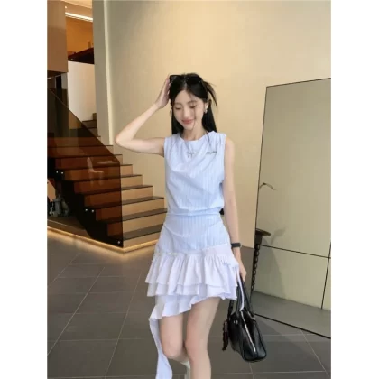 | nameOriginal | Beach vacation blue striped top two-piece vest |