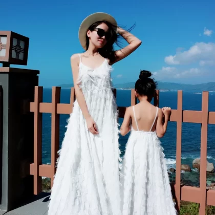 | nameOriginal | Beach vacation fairy suspender beach long skirt parent-child outfit |