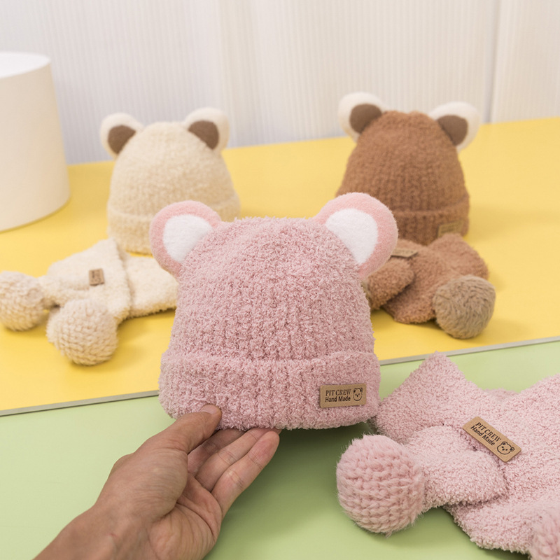 | nameOriginal | Bear ears baby hat winter warm baby plush hat thick boys and girls knitted wool hat scarf two-piece set |