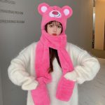 Bear hat three-piece hat scarf integrated autumn and winter earmuffs windproof Lei Feng hat plush riding warm scarf