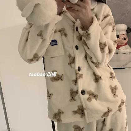 | nameOriginal | Bear Pajamas Women's Autumn and Winter Thickened Coral Velvet 2022 New Plus Velvet Student Men's Home Clothes Couple Set |