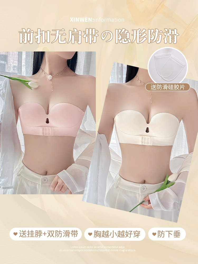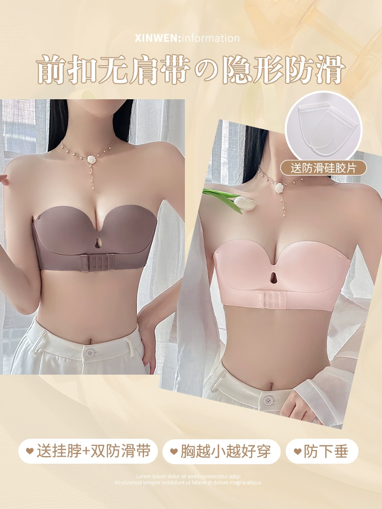 Beautiful back front buckle anti-slip invisible halter bra underwear