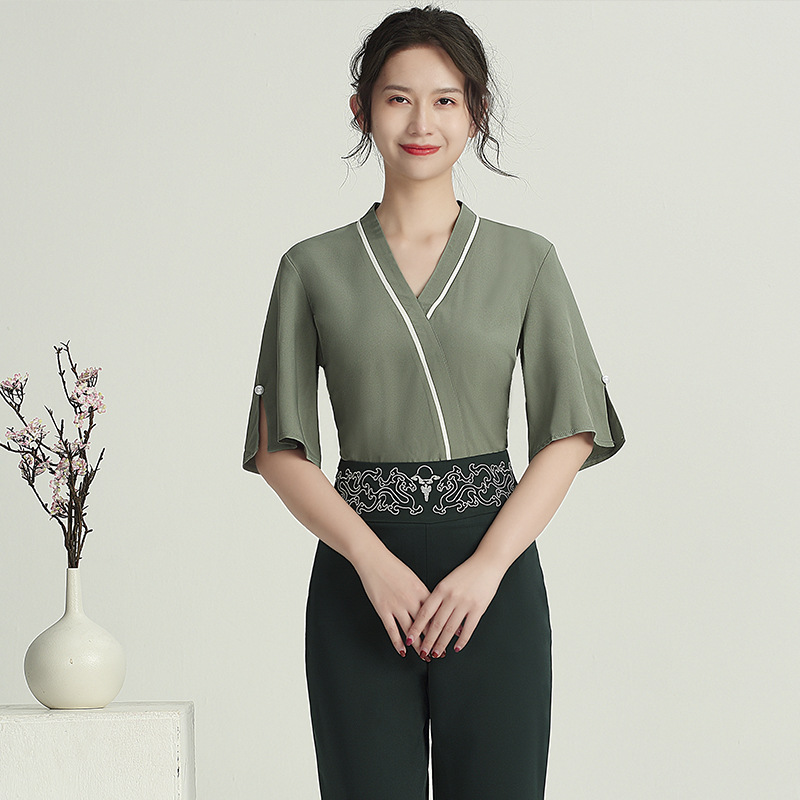 صالون تجميل التجميل ملابس العمل الإناث صالون الصحة حمام القدم باديكير فني مجموعة مزاجه فستان JY-2022