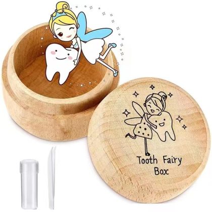 صندوق أسنان مستدير من خشب الزان، صندوق تخزين خشبي لأسنان الطفل، صندوق تخزين أسنان أمازون مع غطاء