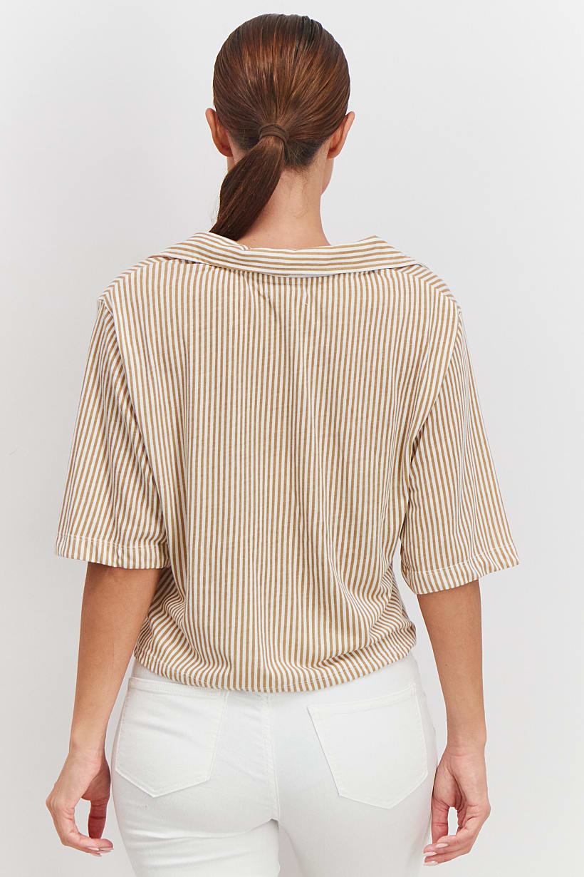 | nameOriginal | Women V-neck Short Sleeve Striped Blouse, Beige Combo |