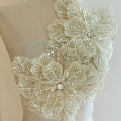 | nameOriginal | Beige heavy industry three-dimensional dress wedding dress show flowers |