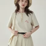 "Beijima AMUU" Japanese retro embroidered loose short-sleeved T-shirt for women's summer slim and versatile design top