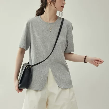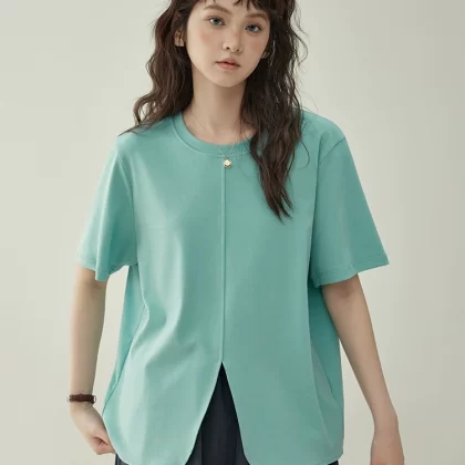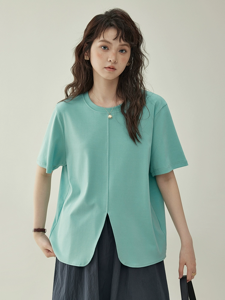 | nameOriginal | "Beijima AMUU Original" round neck solid color hem slit short-sleeved T-shirt for women summer loose slimming top for women |