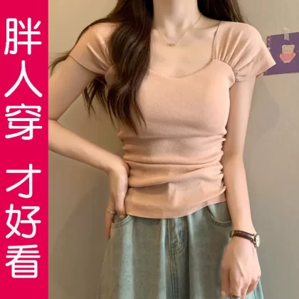 | nameOriginal | Belly-covering design, thin T-shirt, knitted short sleeves |
