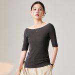 [Ben Chu] Spring and Summer 18-pin Seamless One Tencel Base Shirt Women's One-character Collar Five-point Sleeve Thin Knitted Shirt T-shirt