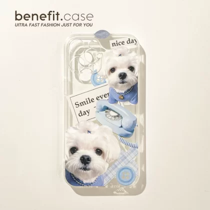 Benefit Japanese and Korean cute dog blue series 16 suitable for 15 Apple 13 mobile phone case iphone14promax new 12 protective cover 11 cute pet xsmax transparent xr silicone 8p7p female