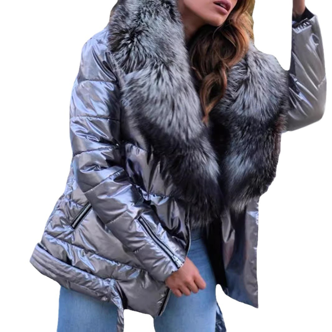 | nameOriginal | Best selling European and American large size women's down cotton-padded jacket Amazon wish bright face large fur collar short cotton-padded jacket women's coat |
