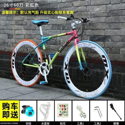 Bicycle Road Car Variable Speed Solid Tire Road Racing Bicycle Live Flying 26 Inch 24 Male and Female Students Adult Hot