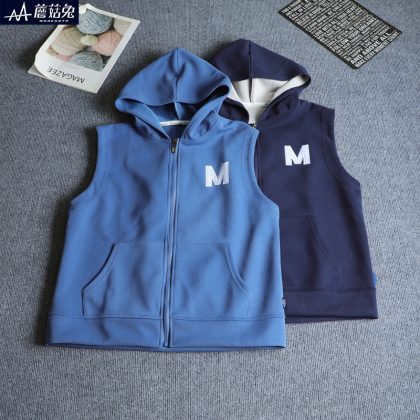 Big boys' hooded vest 2023 Spring and Autumn new medium and big children's vest jacket teenagers fat boys autumn