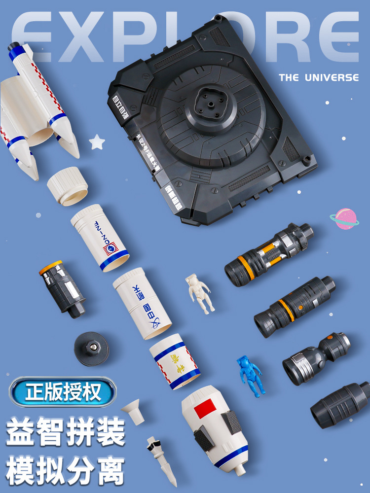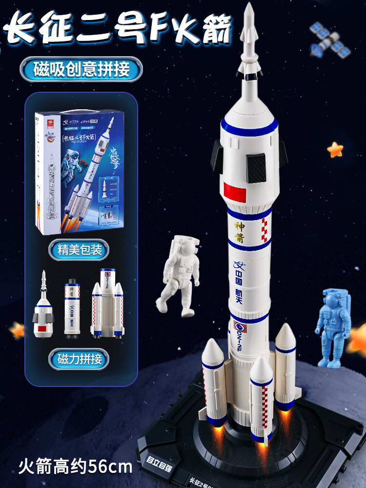 Big children's rocket toy magnetic suction assembled puzzle building blocks space spacecraft aircraft model gift boy Cross