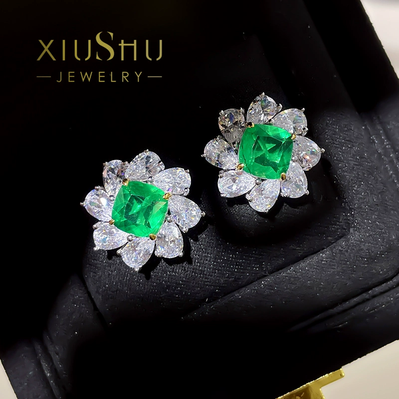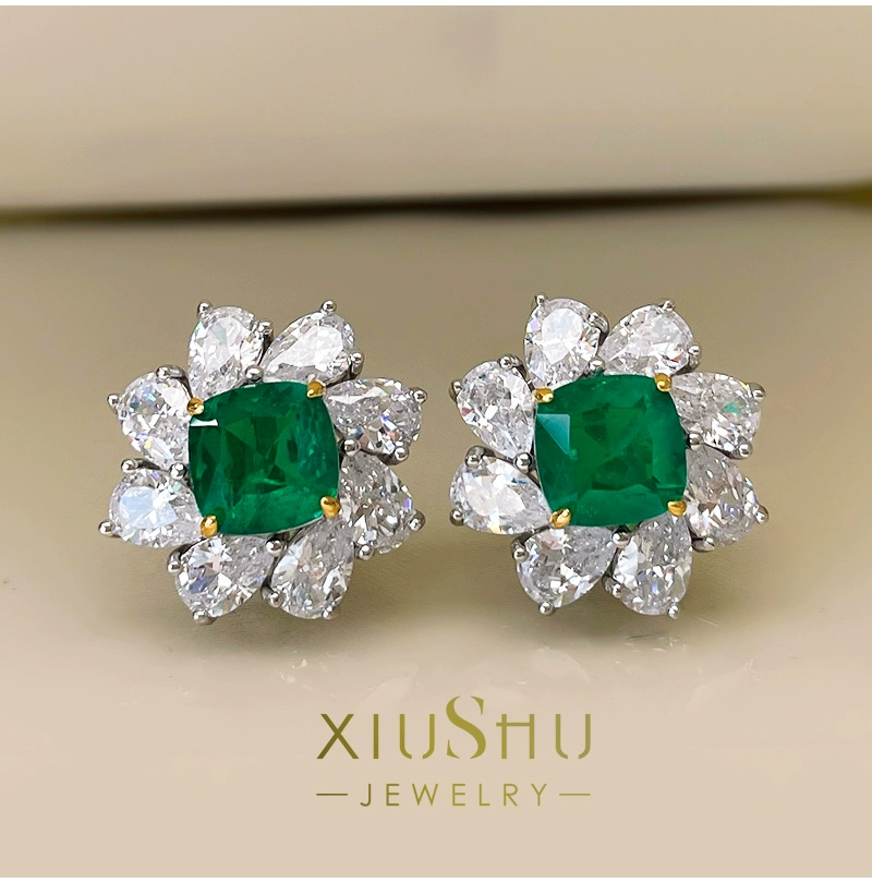 فلاش عملاق! زمرد صناعي 3 قيراط، لون خشب كولومبيا 925 فضي مستورد عالي الكربون الماس E63