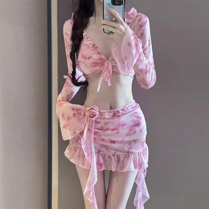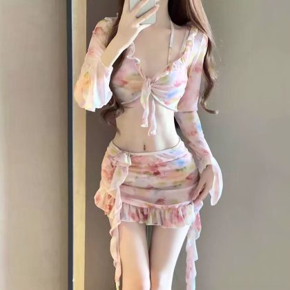| nameOriginal | Bikini swimsuit split four-piece long sleeve fashion printing sweet sexy steel gathered beach swimsuit wholesale |