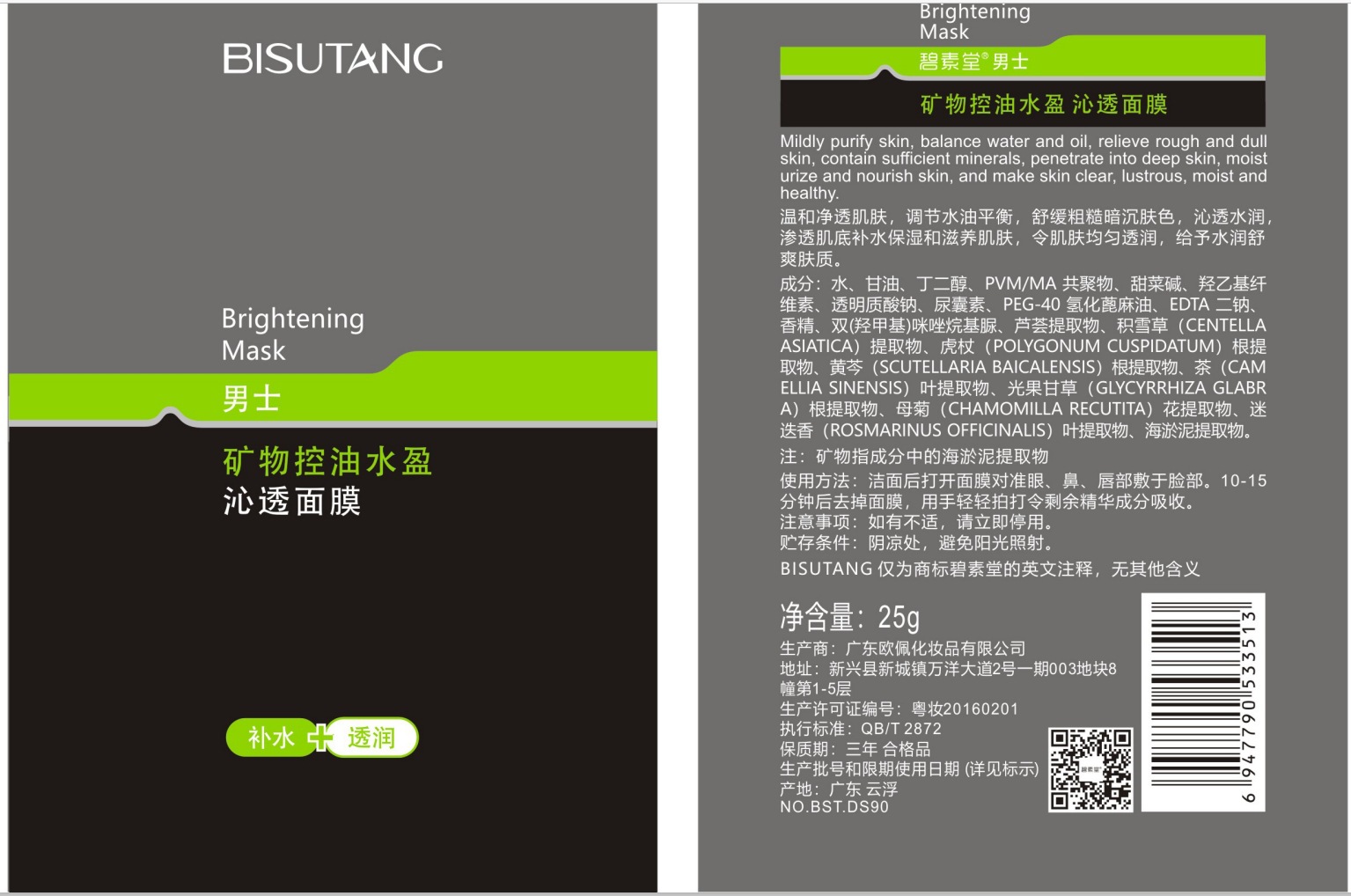 | nameOriginal | Bisutang Water Run Mineral Men's Mask Degreased Skin Delicate White Moisturizing Skin Care Wholesale Factory Outlet |