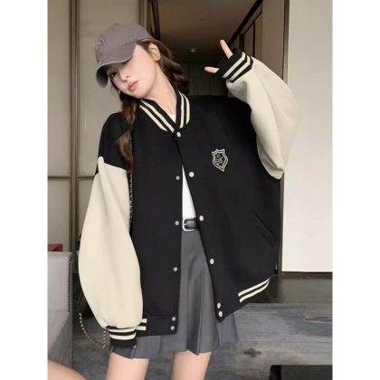 | nameOriginal | Black American retro baseball jacket women's 2024 Spring and Autumn New Korean style student baseball uniform jacket top |