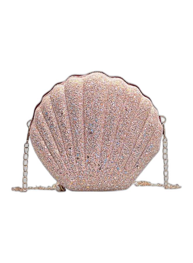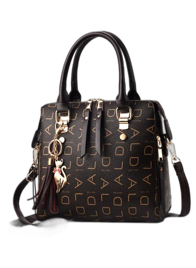 حقيبة كروس بودي باللونين الأسود والذهبي بنقش برشام وفيونكة.