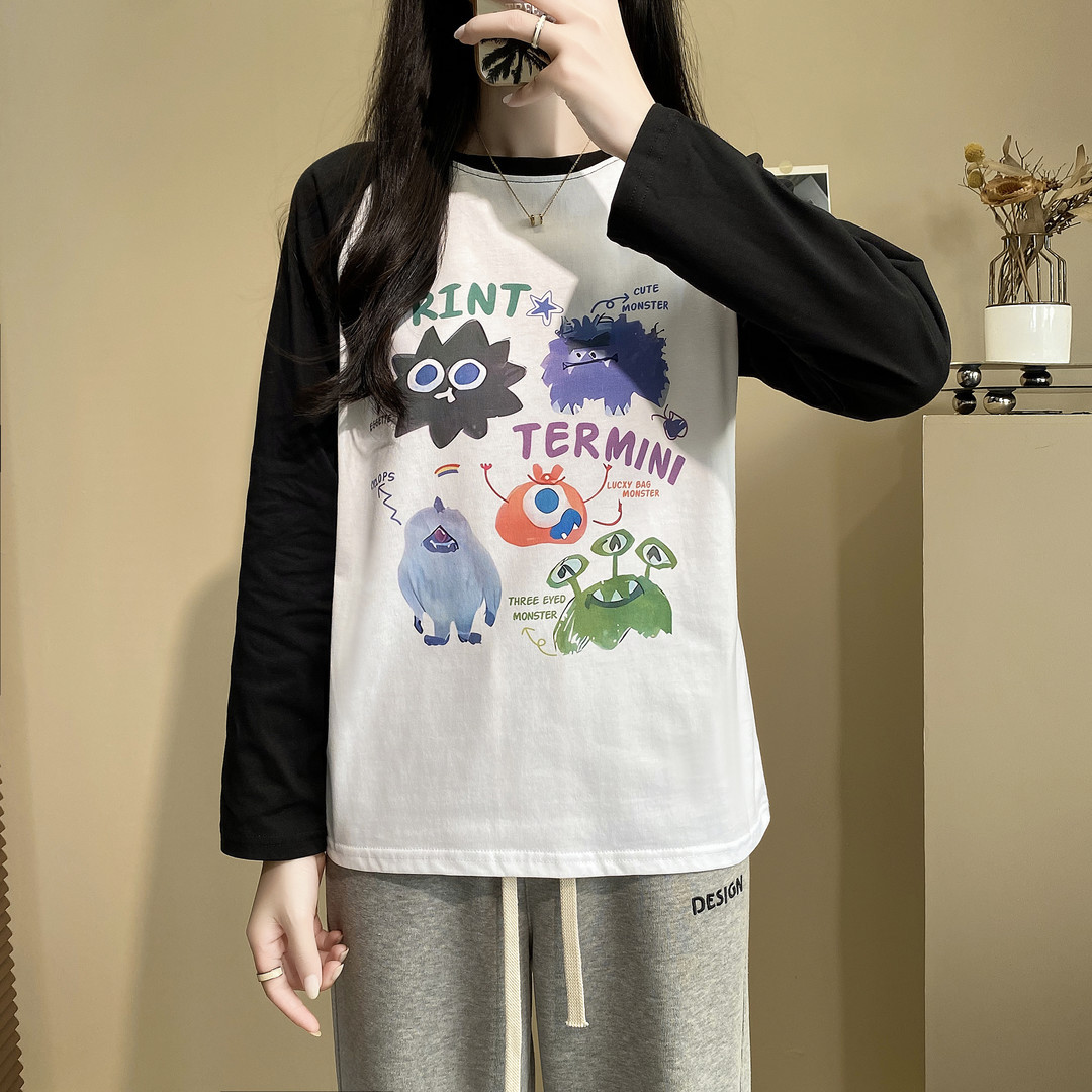 | nameOriginal | Black and white contrast color stitching long sleeve T-shirt women's autumn 2024 new loose inner base shirt raglan sleeve top |