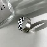 | nameOriginal | Black and white contrast S925 silver index finger ring for women, love checkerboard pattern, trendy, simple and personalized open ring, Japanese and Korean |
